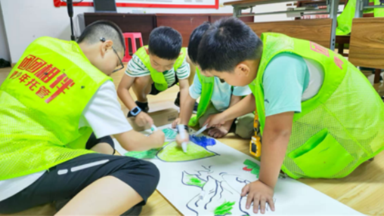 团队还紧扣“节水护水”主题,在社区暑期托管班中组织“绿韵润童心,节水入万家”科普活动与“手绘绿水青山”实践教学。志愿者通过数据对比、生活案例分享等形式,揭示水资源紧缺的严峻现实,传授节水小窍门。孩子们在十米长卷上尽情绘画心中的绿水青山,并在互动中掌握“一水多用”“随手关龙头”等实用知识,节水意识在轻松愉快的氛围中深入人心。